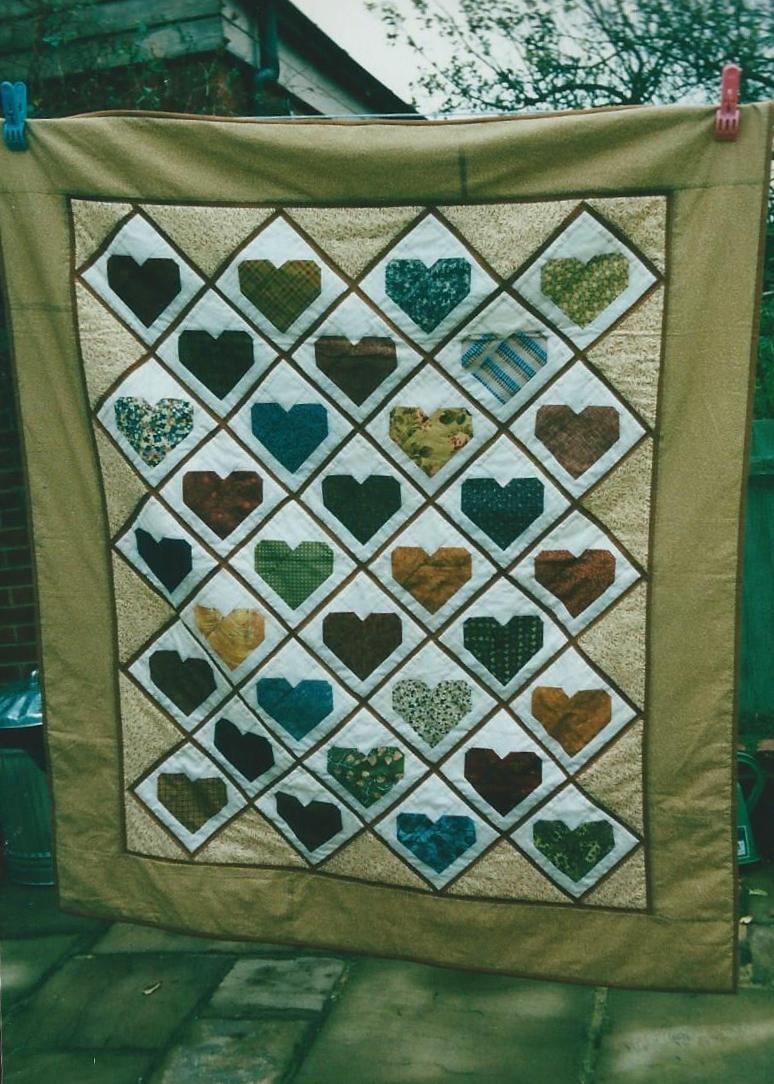 This one was a gift for a friend & co-worker (at the time); I haven't actually seen her in quite a few years, so I hope the quilt is still going strong. It's a good pattern - I think it came from Australian P&Q magazine originally, though I no longer have it. It would be easy enough to work out, though, if I wanted to do it again. Maybe for a PL quilt.