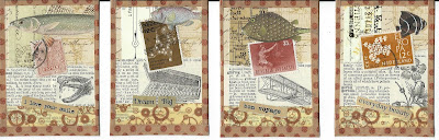 Here are somore more round robin cards - these are ones where I was the middle person to work on them, so you can see the finished card (above), as well as the starting point and what the card looked like when I had added something to it.