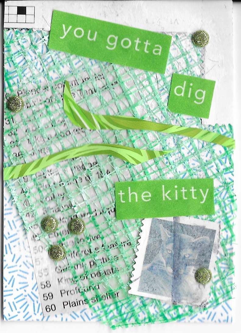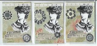 Two sets of ATCs, which were round robins. In both sets, I was the third (of three) people to add something to the card.